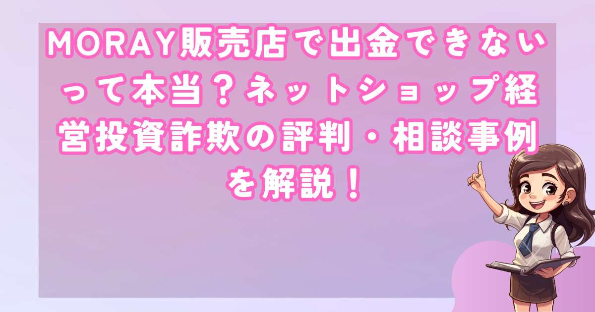 MORAY販売店というネットショップ経営投資案件について調べると、まずよく目にするのが「出金できない」「詐欺っぽい」といった口コミ・評判です。