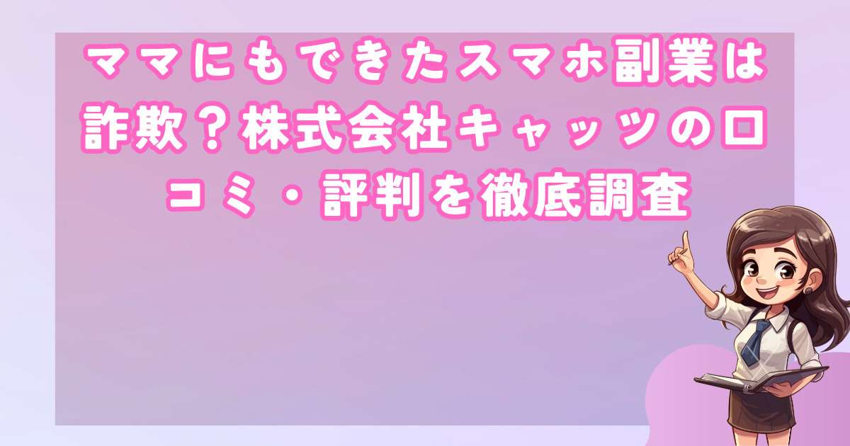 「ママにもできたスマホ副業」と謳う株式会社キャッツの副業案件について調査した結果、極めて悪質な詐欺の可能性が高いことが明らかになりました。