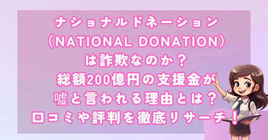 今回、ナショナルドネーション(NATIONAL DONATION)という支援金案件について詳細に調査を行いました。