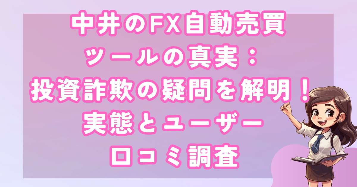 今回、中井が提供するFX自動売買ツールという副業について調査しました。