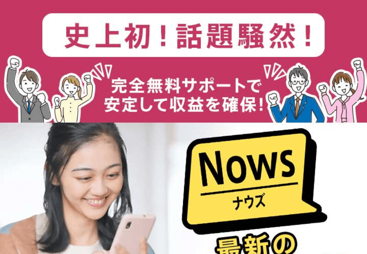 今回ご紹介する「Nows(ナウズ)」は、完全無料サポートにて安定して収益を確保できるとのこと。「スキマ時間」を活用するもので、1日10分でも問題ないとのことなので、気になる方も多いのではないでしょうか?