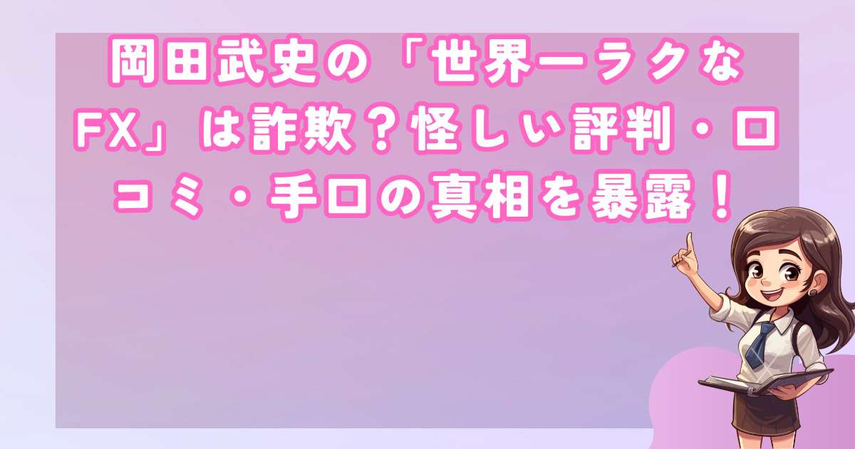 この記事では、岡田武史の「世界一ラクなFX」の実態と、怪しい評判や口コミ、詐欺的な手口の真相について詳しく解説いたします。