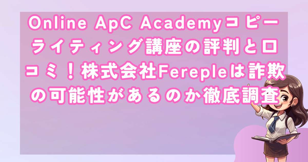 副業ブームに便乗して乱立するオンライン講座の中でも、特に問題視されているのが「Online ApC Academy」というコピーライティング講座です。