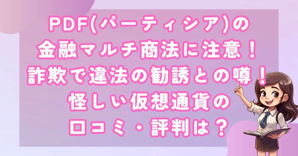 PDFプロジェクトには仮想通貨詐欺の可能性が指摘されており、ここではパーティシアのステーキングやネットワークビジネスへの参加を避けるべき理由を解説します。