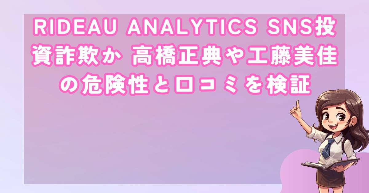 近年、SNSを通じた投資詐欺の被害が急激に増加していますが、中でも特に深刻な問題となっているのがRIDEAU ANALYTICSを名乗る偽の投資プラットフォームです。