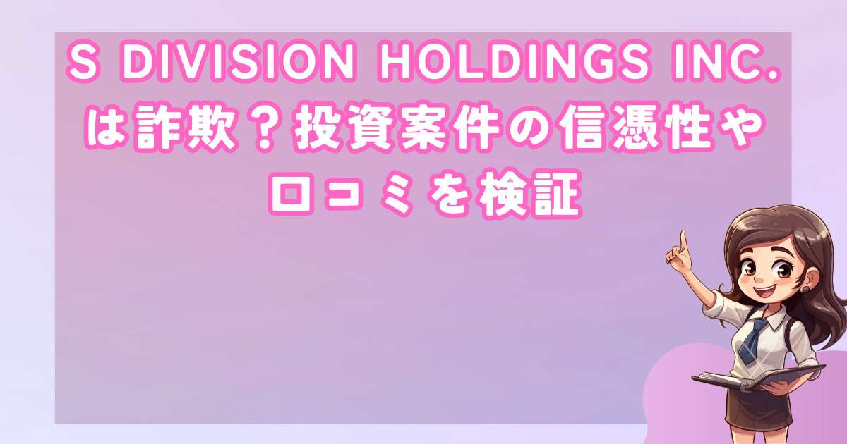 S DIVISION HOLDINGS INC.の事例は、投資詐欺の典型的なパターンを示しています。