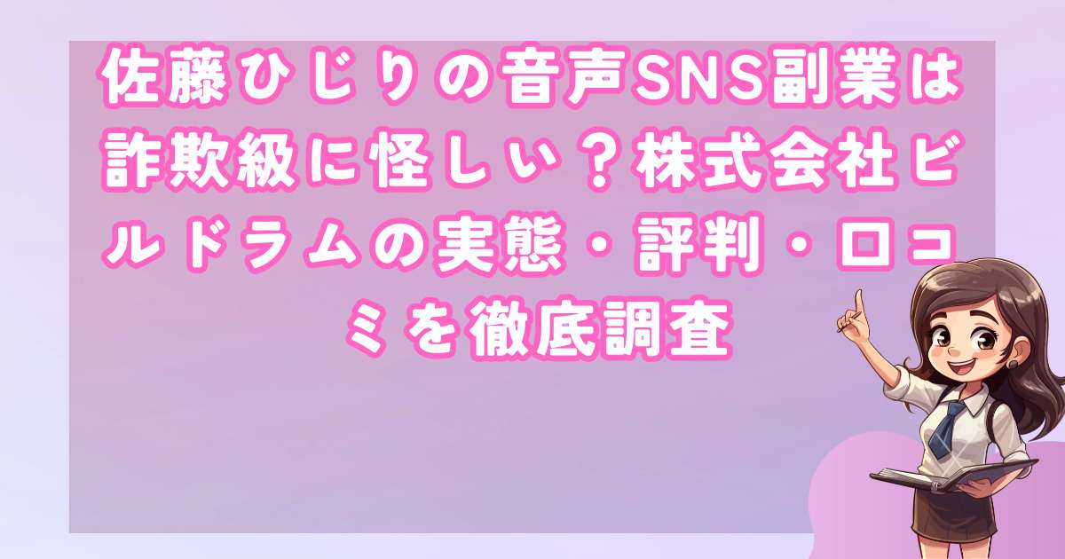 佐藤ひじりの音声SNS副業は、株式会社ビルドラムという信頼性に疑問のある企業が提供しており、誇大広告や不当な勧誘方法の疑いが濃厚です。