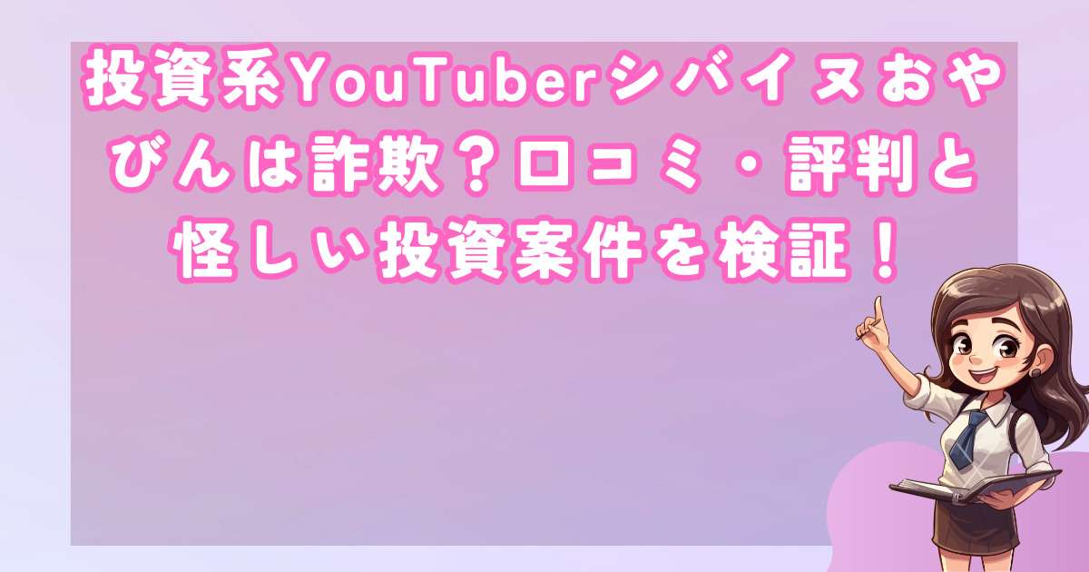 投資系YouTuberシバイヌおやびんが紹介する投資案件は、明らかに詐欺的な手口を用いた危険な副業・投資案件です。