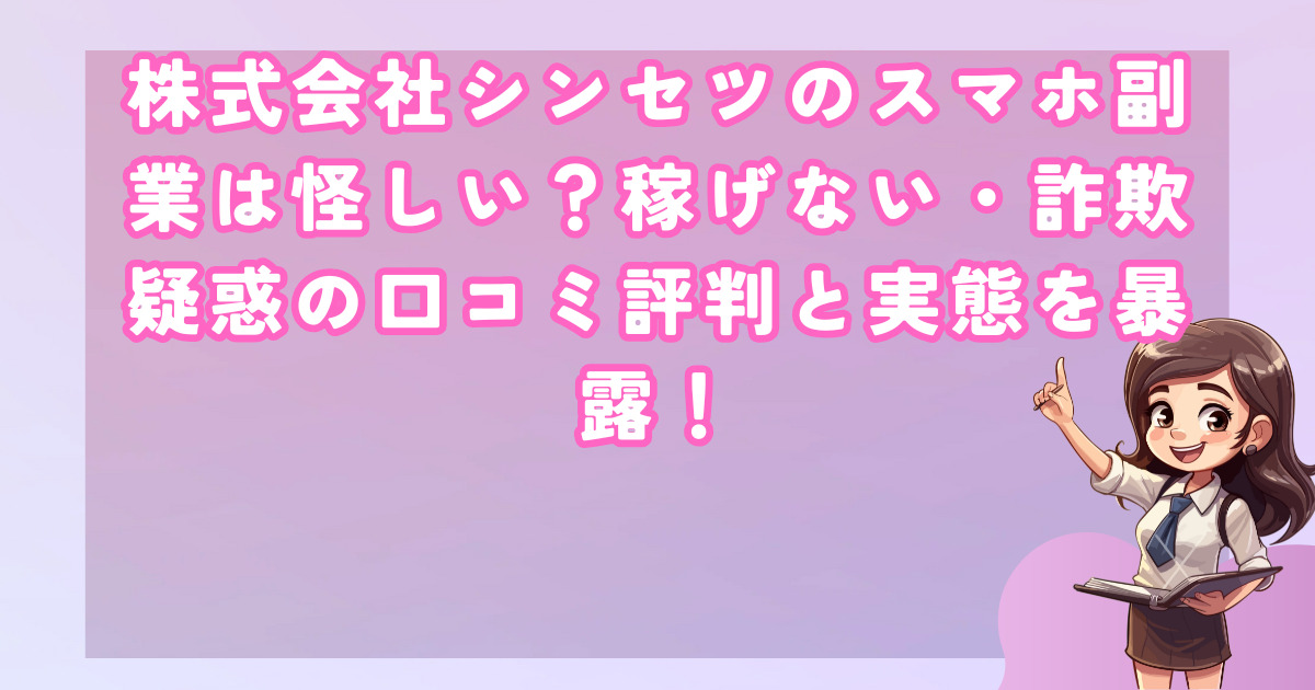株式会社シンセツが提供するスマホ副業について、インターネット上で様々な疑問の声が上がっています。