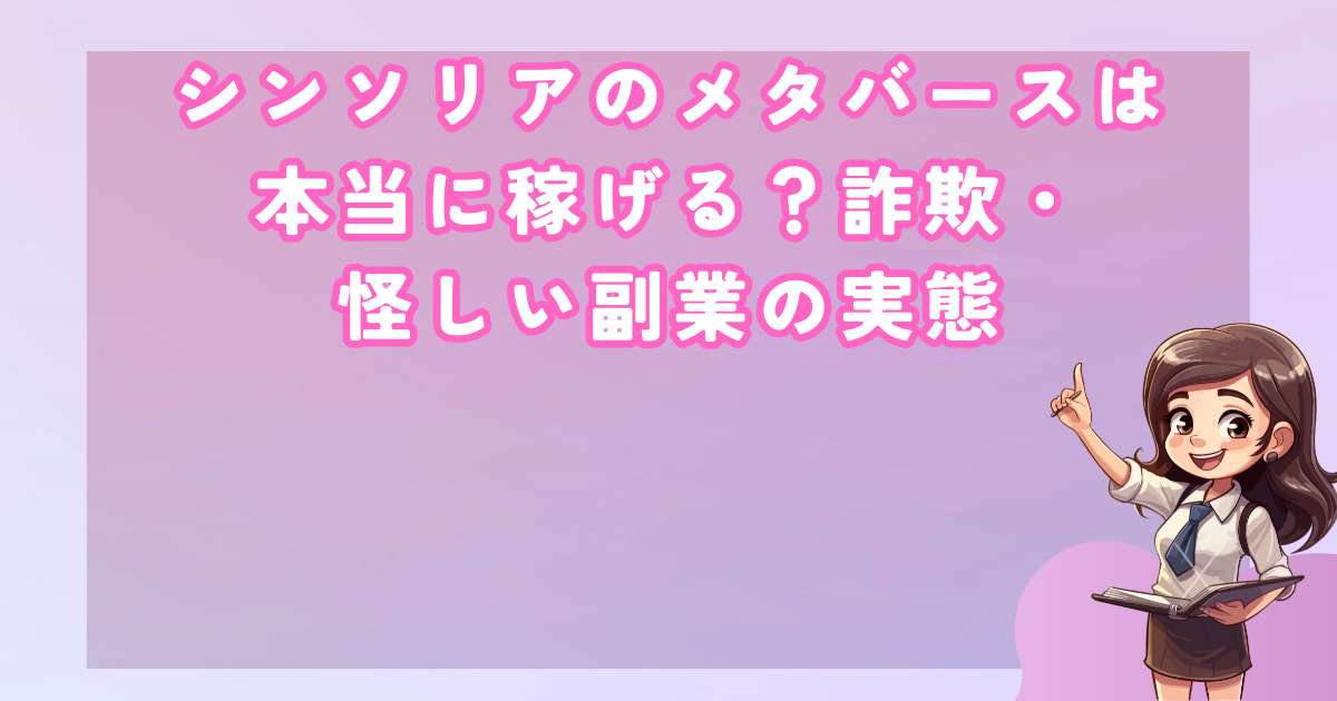 シンソリアのメタバース副業案件は、運営情報が不透明で、特商法違反の疑いが強く、出金拒否やサポート不在などの被害が続出しています。