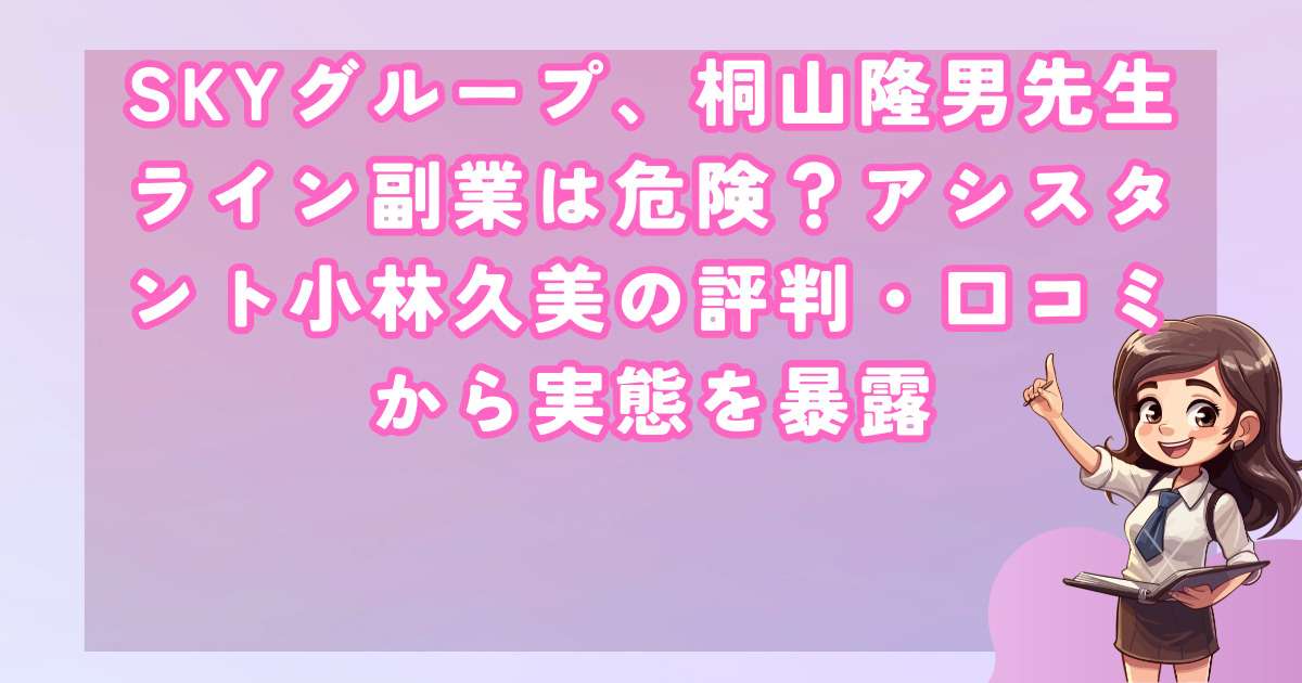 SKYグループの桐山隆男先生とアシスタント小林久美氏による副業案件については、運営体制の不透明性、法的な問題、参加者からの否定的な評判など、多くの危険信号が確認されています。