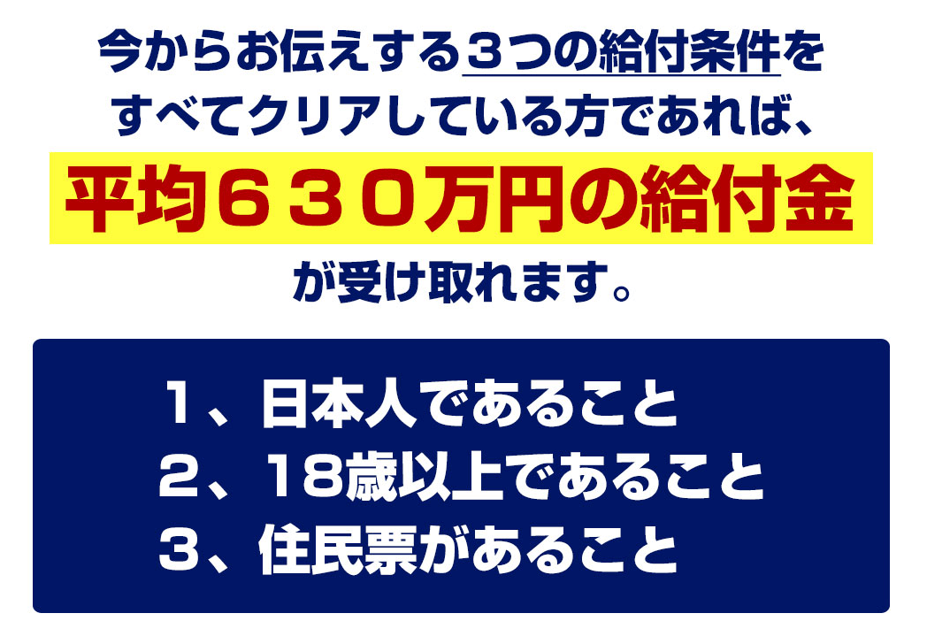 の3つの条件を満たしていると平均で630万円の給付金を受け取れるというもの。