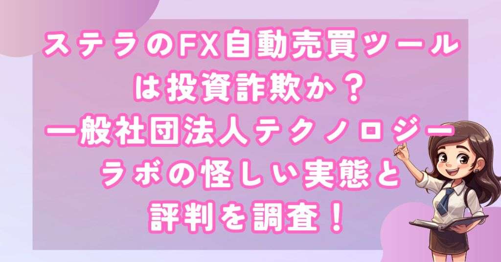 一般社団法人テクノロジーラボが開発したFX自動売買ツール「ステラ」に関する調査を行いました。