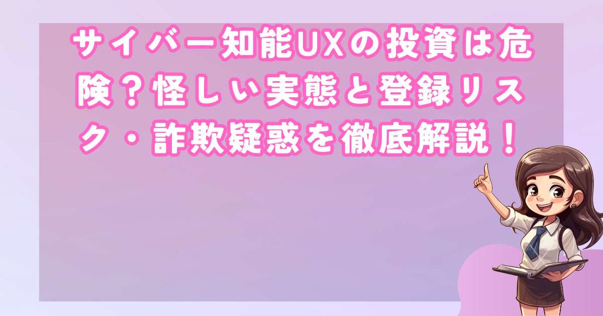 近年、副業や投資案件として注目を集めているサイバー知能UXですが、その実態について多くの疑問の声が上がっています。