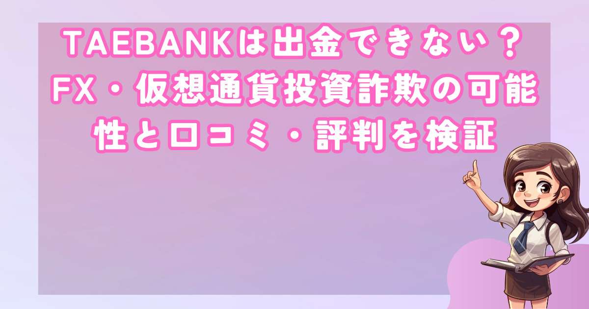 TAEBANKで報告されている問題点は、FXや仮想通貨を利用した投資詐欺の典型的なパターンと完全に一致しています。