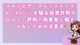 投資コロンビア・スレッドニードル(ASGI)を騙る投資詐欺の口コミ・評判!偽業者に騙されないための注意点 皆さんこんにちは!河口です! 近年、インターネット上で深刻な問題となっているのが、実在する大手金融機関の名前を悪用した... 2025.09.23投資