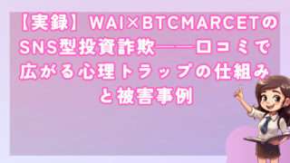 投資【実録】WAI×BTCMARCETのSNS型投資詐欺──口コミで広がる心理トラップの仕組みと被害事例 皆さんこんにちは!河口です! 近年、SNSを通じて広がる投資詐欺が深刻な社会問題となっています。特にWAI×BTCMA... 2025.10.08投資