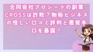 投資合同会社プロシードの副業CROSSは詐欺?物販ビジネスの怪しい口コミ評判と悪質手口を暴露! 皆さんこんにちは!河口です! 副業を探している方々の間で注目を集めている合同会社プロシードが運営する「CROSS」とい... 2026.01.14投資
