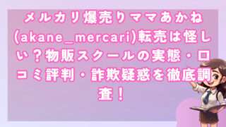 投資メルカリ爆売りママあかね(akane_mercari)転売は怪しい?物販スクールの実態・口コミ評判・詐欺疑惑を徹底調査! 皆さんこんにちは!河口です! 近年、副業ブームに乗って様々な物販スクールやコンサルタントが台頭していますが、その中でも... 2025.11.02投資