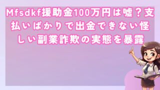 投資Mfsdkf援助金100万円は嘘?支払いばかりで出金できない怪しい副業詐欺の実態を暴露 皆さんこんにちは!河口です! Mfsdkf援助金100万円は、SNSやメッセージを通じて突然案内されるケースが多いとさ... 2026.01.01投資