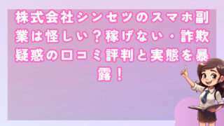 投資株式会社シンセツのスマホ副業は怪しい?稼げない・詐欺疑惑の口コミ評判と実態を暴露! 皆さんこんにちは!河口です! 株式会社シンセツが提供するスマホ副業について、インターネット上で様々な疑問の声が上がって... 2026.01.02投資