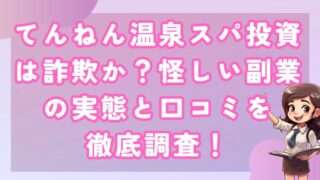 副業てんねん温泉スパ投資は詐欺か?怪しい副業の実態と口コミを徹底調査! 皆さんこんにちは!河口です! 結論から言いますが、てんねん温泉スパ投資を推奨することはできません。 ... 2024.09.01副業