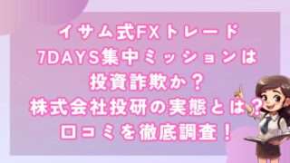 副業イサム式FXトレード7DAYS集中ミッションは投資詐欺か?株式会社投研の実態とは?口コミを徹底調査! 皆さんこんにちは!河口です! 今回は「イサム式FXトレード7DAYS集中ミッション」という副業について詳細... 2024.07.22副業