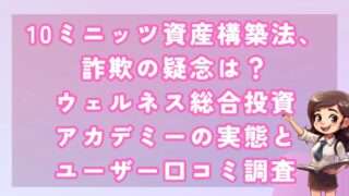 副業10ミニッツ資産構築法、詐欺の疑念は?ウェルネス総合投資アカデミーの実態とユーザー口コミ調査 皆さんこんにちは!河口です! この動画では、10ミニッツ資産構築法について分析しました。 結... 2025.01.25副業