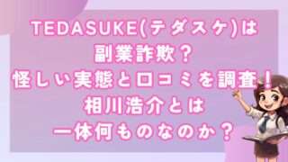 副業TEDASUKE(テダスケ)は副業詐欺?怪しい実態と口コミを調査!相川浩介とは一体何ものなのか? 皆さんこんにちは!河口です! TEDASUKE(テダスケ)に関して注意が必要です。 この副業は怪しい評判が多... 2024.05.27副業