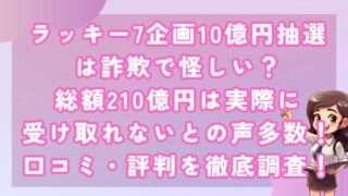 副業ラッキー7企画10億円抽選は詐欺で怪しい?総額210億円は実際に受け取れないとの声多数!口コミ・評判を徹底調査! 皆さんこんにちは!河口です! 今回はラッキー7企画について調査しました。 結論から言うと、この企画で... 2024.08.29副業