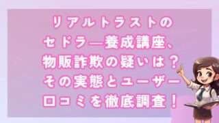 副業リアルトラストのセドラ―養成講座、物販詐欺の疑いは?その実態とユーザー口コミを徹底調査! 皆さんこんにちは!河口です! セドラ―養成講座が提供する「セドラ―養成講座」副業を徹底調査しました。 ... 2025.01.05副業