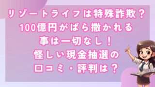 副業リゾートライフは特殊詐欺?100億円がばら撒かれる事は一切なし!怪しい現金抽選の口コミ・評判は? 皆さんこんにちは!河口です! 今回のテーマは、副業案件として急浮上している【リゾートライフ】について、詳細な検証を... 2024.05.20副業