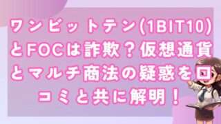 副業ワンビットテン(1BIT10)は仮想通貨詐欺?マルチ商法って本当?FOCは怪しいとの口コミ! 皆さんこんにちは!河口です! FOC(Retri)と1BIT10は、Twitter上で「怪しい」「詐欺」といった声... 2024.06.03副業