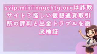 投資svip.miniinngehtg.orgは詐欺サイト?怪しい仮想通貨取引所の評判と出金トラブルを徹底検証 皆さんこんにちは!河口です! svip.miniinngehtg.orgという仮想通貨取引所について調査した結果、極め... 2025.10.05投資