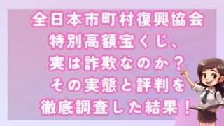副業全日本市町村復興協会特別高額宝くじ、実は詐欺なのか?その実態と評判を徹底調査した結果! 皆さんこんにちは!河口です! 今回、全日本市町村復興協会特別高額宝くじの案件を調査しました。 ... 2024.11.08副業