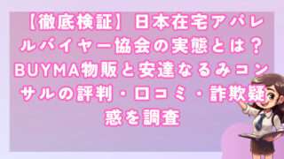 投資【徹底検証】日本在宅アパレルバイヤー協会の実態とは?BUYMA物販と安達なるみコンサルの評判・口コミ・詐欺疑惑を調査 皆さんこんにちは!河口です! インスタグラムやSNSで頻繁に目にする「在宅アパレルバイヤー」という副業案件をご存じでし... 2026.02.14投資