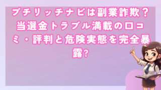 投資プチリッチナビは副業詐欺?当選金トラブル満載の口コミ・評判と危険実態を完全暴露 皆さんこんにちは!河口です! プチリッチナビという名前を聞いて、簡単に稼げる副業だと期待されている方も多いのではないで... 2025.12.03投資