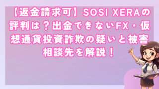 投資【返金請求可】SOSI XERAの評判は?出金できないFX・仮想通貨投資詐欺の疑いと被害相談先を解説! 皆さんこんにちは!河口です! SOSI XERAという名前を耳にした方も多いのではないでしょうか。 このサービスは、... 2025.12.05投資
