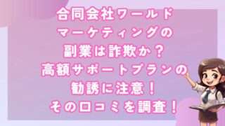 副業合同会社ワールドマーケティングの副業は詐欺か?高額サポートプランの勧誘に注意!その口コミを調査! 皆さんこんにちは!河口です! 今回は「合同会社ワールドマーケティングの副業商材」に焦点を当てています。 ... 2024.08.01副業