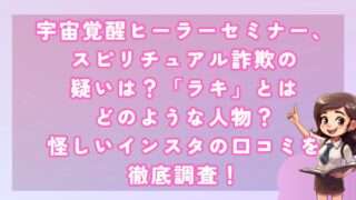 副業宇宙覚醒ヒーラーセミナー、スピリチュアル詐欺の疑いは?「ラキ」とはどのような人物?怪しいインスタの口コミを徹底調査! 皆さんこんにちは!河口です! 今回、ラキ主催の「宇宙覚醒ヒーラーセミナー」という副業について調査しました。... 2025.01.06副業
