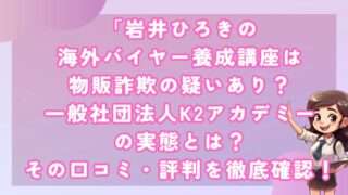 副業岩井ひろきの海外バイヤー養成講座は物販詐欺の疑いあり?一般社団法人K2アカデミーの実態とは?その口コミ・評判を徹底確認! 皆さんこんにちは!河口です! 今回は岩井ひろきが提供する「3ステップ式海外バイヤー養成無料トレーニング動画」を徹底... 2024.07.11副業