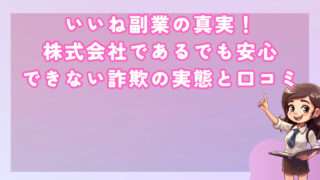副業いいね副業の真実!株式会社であるでも安心できない詐欺の実態と口コミ 皆さんこんにちは!河口です! 副業市場では、「SNSでいいねを押すだけで稼げる」「誰でも簡単に収入アップ」といった宣伝... 2025.06.18副業