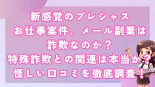副業新感覚のプレシャスお仕事案件、メール副業は詐欺なのか?特殊詐欺との関連は本当か?怪しい口コミを徹底調査! 皆さんこんにちは!河口です! 新感覚のプレシャスお仕事案件について調査し、その結果をお伝えします。 ... 2024.10.09副業