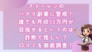 副業フリーレンのパクリ副業に警戒!誰でも月収50万円が目指せるというのは詐欺で怪しい?口コミを徹底調査! 皆さんこんにちは!河口です! LINEでの相談が増えています。「誰でも月収50万円が目指せる」と謳われる副業につい... 2024.06.18副業