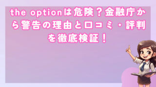 投資the optionは危険?金融庁から警告の理由と口コミ・評判を徹底検証! 皆さんこんにちは!河口です! the optionは、投資としての魅力を強く見せる一方で、口コミ・評判の面では不安要素... 2025.12.29投資