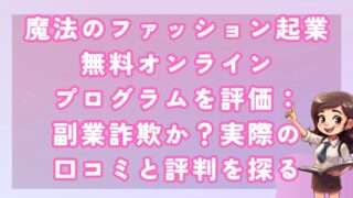 副業魔法のファッション起業無料オンラインプログラムを評価:副業詐欺か?実際の口コミと評判を探る 皆さんこんにちは!河口です! 「魔法のファッション起業無料オンラインプログラム」とは何か、そしてこれが副業... 2025.01.21副業
