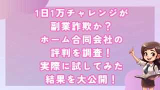 副業1日1万チャレンジが副業詐欺か?ホーム合同会社の評判を調査!実際に試してみた結果を大公開! 皆さんこんにちは!河口です! 今回は『1日1万チャレンジ』という商材を取り上げます。 初めに結論 特定... 2024.09.29副業