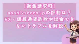 【返金請求可】asahivsecco.jpの評判は?FX・仮想通貨詐欺や出金できないトラブルを解説