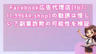 投資Facebook広告代理店(fb7-11.99644.shop)の勧誘は怪しい?副業詐欺の可能性を検証 皆さんこんにちは!河口です! 近年、マッチングアプリやSNSを通じて「Facebook広告代理店」を名乗る怪しい勧誘が... 2025.09.12投資