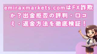 投資emiraxmarkets.comはFX詐欺か?出金拒否の評判・口コミ・返金方法を徹底検証! 皆さんこんにちは!河口です! emiraxmarkets.comというFX取引プラットフォームについて、深刻な懸念が数... 2025.10.19投資